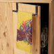 Merken Sie, dass das Bild den Rand des Tuches gegenüberstellt, damit, egal wie Sie den Küchenstoff hängen, Sie den Entwurf sehen können.