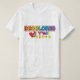 Weißes T-Shirt, das eine Regenbogen gefüllte Decolores und Gluckern-Henne aufpasst über ihre Baby-Küken kennzeichnet