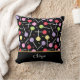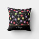 Pastel coloured candy lollipops patterned black pillow. There's customisable text on the front where you can add your name or slogan
