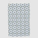 Geometric-patterned towel set with black and white circular designs on light background. Displayed as hanging towels and folded washcloth. Modern and elegant.