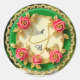 Decorative Green Rim Plate With Pink Rose Runder Aufkleber