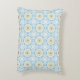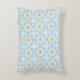 A decorative pillow featuring a symmetrical geometric pattern with blue, white, and brown hues shown from the front and back on a gray background.