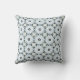 A decorative pillow featuring a symmetrical geometric pattern with blue, white, and brown hues shown from the front and back on a gray background.