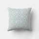 A decorative pillow featuring a symmetrical geometric pattern with blue, white, and brown hues shown from the front and back on a gray background.