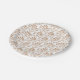 Two views of a decorative plate with a beige floral pattern on a white background. The top image shows a front view, the bottom an angled side view.
