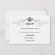 Diese dekorativen Scroll Lilie Wedding RSVP Cards verfügen über einen extravaganten, aber diskreten Bildlauf mit einem Lilie-Symbol oben. Geben Sie Ihr Hochzeitstichtag ein, indem Sie die Vorlage ausfüllen. Die Rückseite der Einladung ist Holzkohle schwarz, mit einem weißen Lilie-Scroll unten. Die Rückseite verfügt über eine Vorlagenoption, um mehr Text hinzuzufügen. Wenn Sie es vorziehen, keinen Text auf der Rückseite zu haben, löschen Sie ihn einfach.