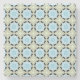 A decorative coaster featuring a symmetrical geometric pattern with blue, white, and brown hues shown from the front and back on a gray background.