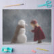 Decoupage Child & Snowman Winter Scene Seidenpapier
