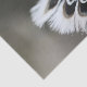 kleiner Weihnachtsvogel, lebhafter rot-weißer Absturz, flauschiger Vogel, Schnee, Wintervogel, faszinierende Federmuster, festlicher Vogel, Urlaubscharakter, charmanter Vogel, detailreiche Federn, Weihnachtsdekoration, Das Bild zeigt einen kleinen, lebendig gefärbten Vogel mit markantem rot-weißen Absturz. Der Vogel hat ein flauschiges Aussehen mit aufwändigen Schwarz-Weiß-Mustern auf seinen Schwanz Federn und Wappen. Der Vogel ist auf einem Schneefleck stehend, das mit seinen hellen Federn kontrastiert und es optisch faszinierend macht. Die großen, dunklen Augen und die detaillierten Federmuster verleihen dem Vogel ein einzigartiges und charmantes Aussehen. Dieses Bild ist interessant wegen der lebendigen Farben des Vogels und der detaillierten, fast künstlerischen Muster seiner Federn, was es zu einem visuell ansprechenden Thema macht, besonders in einem Winter- oder Weihnachtskontext.