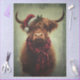 This charming Highland cow brings rustic holiday cheer with its shaggy fur, curved horns, and cozy red-and-black plaid scarf. A sprig of holly and a jaunty Santa hat add festive flair, while the muted green-gray background evokes a wintry forest calm. Perfect for seasonal decoupage, whimsical furniture art, or mixed media projects, this design blends rugged charm with joyful celebration.