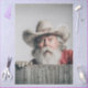 This expressive Santa Claus portrait features a whimsical Western twist—his furry cowboy hat, round glasses, and textured red coat evoke rustic charm and holiday warmth. With one gloved hand resting on a weathered wooden surface and snowflakes gently falling around him, Santa peers forward with a curious, almost mischievous gaze. The soft gray background and dramatic lighting highlight his long white beard and storytelling presence. Available as a purchasable decoupage ePaper from RHDesigns, this design is perfect for layered art, ornaments, holiday cards, or mixed media décor. A festive blend of frontier flair and Christmas tradition—crafted for creators who celebrate with heart and humor.