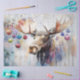 Ein skurriles Gemälde eines majestätischen Elchs mit seinen Geweihten, die mit bunten Weihnachtsschmuck verziert sind. Der Elch liegt in einer winterlichen Landschaft, umgeben von schneebedeckten Bäumen und einer Springbrunnen feierlichen Beifall. Die Verwendung lebendiger Farben und zarter Pinselstriche erweckt die Szene zum Leben und erweckt den Zauber der Urlaubssaison. Mit einem eigenartigen Blick scheint der Elch die Feriendekorationen zu genießen und die Winterlandschaft mit "Elchmalerei", "Weihnachtskunst", "Winterkunst", "Tierkunst" und "Feriendekorationen" in Ihren Beschreibungen und Titeln zu erleben. Ein Elch mit Weihnachtsschmuck in einer Winterlandschaft." #mooseart, #christmasart, #winterart, #animalart und #holidaydecorations.