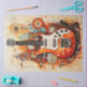 Das Bild zeigt eine elektrische Gitarre mit einem auffallenden orangen und weißen Design. Sie ist zentriert auf einen dynamischen, abstrakten Hintergrund, der mit dynamischen geometrischen Formen, mechanischen Komponenten und fetten Farbspritzen wie Orange, Rot, Blau und Gelb gefüllt ist. Die Gitarre umfasst sechs Saiten, einen weißen Pickguard, Kontrolle-Knöpfe, und eine detaillierte Brücke, die Realismus mit einem künstlerischen Flair vermischt. Die Komposition ist kühn, energisch und visuell faszinierend. Elektrische Gitarren-Design Inspiration Ideen, lebendiger abstrakter Hintergrund künstlerischer Stil, geometrische Formen bunten Komposition Themen, detaillierte Bridge-innovative Gitarren Features, orange-weiße E-Gitarre, fette mechanische Komponenten Gitarre Layout, Gitarren Saiten und Kontrolle Knöpfe, künstlerischer Flair dynamischen visuellen Anklang, gitarrenzentrierte lebendige kreative Darstellung, moderne E Gitarre Design-Trends, Mann cave, Mans Sitzungszimmer,