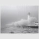 Dieses stimmungsvolle Bild erfasst eine ruhige Winterlandschaft, in der ein Zug durch einen frostbewachsenen Wald fährt. Die gesamte Szene ist in eisweißem Weiß verstaubt, von den zarten Baumzweigen bis zum überzogenen Boden, was eine ätherische, gefrorene Stille hervorruft. Im Hintergrund erhebt sich ein großer Leuchtturm über den Baumkronen, dessen Silhouette durch die verstaubte Luft leicht gemildert wird. Der Zug, der sich stetig entlang seiner Strecke bewegt, verleiht ihm ein ruhiges Gefühl der Bewegung und des Zwecks, das sich wunderbar mit der ruhigen, gedämpften Umgebung abhebt. Die coolen monochromen Farbtöne und das helle Licht schaffen eine kinematische, fast traumhafte Qualität - wie ein Moment, der zwischen den Jahreszeiten oder Erinnerungen aufgehängt wird. Winterschneewald, Lighthouse-Landschaftskunst, Friedliche Winterreiseszene, Schneebedecktes Foto der Waldbahn, ruhiges saisonales Reisebild, Frostiges Landschaftsbild mit Leuchtturm, kinematischer Winterzug, Dreamy-Kaltwetterdekor, Eisenbahn durch eisige Wälder, Serene-Winterzeitmauerkunst.