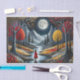 Decoupage - Mädchen in rot und Herbstmondlandschaf Seidenpapier
