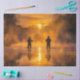 Das Bild zeigt zwei Leute, die in einer ruhigen, scheuen Umgebung bei Sonnenaufgang oder Sonnenuntergang fischen. Die Szene ist schön beleuchtet mit warmen, goldenen Farbtönen, die vom Wasser reflektieren und eine ruhige und malerische Atmosphäre schaffen. Die Silhouetten der Menschen und der umliegenden Bäume tragen zur Tiefe und zum Interesse der Komposition bei und machen sie zu einem faszinierenden und friedlichen Moment in der Natur. Angelszene, ruhige Umgebung, gemütlicher Morgen, Sonnenaufgang Angeln, Sonnenuntergang Fischen, warme goldene Farben, Wasser Reflexion, ruhige Atmosphäre, malerische Landschaft, Silhouetten, friedliche Augenblicke, Naturfotografie, landschaftliche Schönheit, Outdoor-Aktivität, entspannende Angeltour.