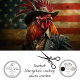 Kunstwerk eines Hahn mit menschgemachten Merkmalen, gekleidet in einer Vintagen militärischen Uniform, die an die Zeit des Amerikanischen Unabhängigkeitskrieges erinnert. Der Hahn steht vor einer alten amerikanischen Flagge. Dieses Bild ist interessant wegen seiner anthropomorphischen Darstellung des Hahnens, die die Elemente von Mensch und Tier in einem patriotischen Kontext vermischt.