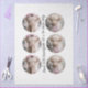 This charming set of six 3-inch circular designs features a light-colored Highland cow with long, shaggy fur in whimsical winter scenes. Each circle showcases the cow in a snowy wonderland, adorned with pink scarves, holly-topped hats, and festive accessories. Snow-dusted trees and pink ornaments complete the cozy, magical vibe.