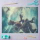 This elegant winter messenger travels along the ice on ice skates in this steampunk Victorian fantasy world towers a tower in this detailed fantasy artwork. This tissue paper is perfect for crafts like decoupage.