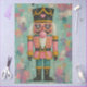 This playful nutcracker bursts with personality—decked in vibrant pinks, teals, and golds, with heart-shaped eyes and a bubblegum pop that steals the spotlight. A pink heart crowns the black hat, while snowflake-stamped pupils add a frosty wink of charm. The textured teal and pink background creates a snowy, whimsical atmosphere, perfect for holiday crafting, furniture art, or layered mixed media projects.