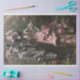 Viktorianische Spirituosen In diesem faszinierenden Kunstwerk stehen zwei Figuren in aufwändigen Kostümen aus der Viktorianischen Zeit inmitten eines üppigen Gartens voller Grün und rosa Blume. Die Figur auf dem links, die einen grauen Anzug und einen Hut trägt, strahlt ein Gefühl zeitloser Eleganz aus. Die Figur rechts, in einem rosa und schwarzen Kleid mit einem passenden Blumenhut geschmückt, verleiht der Figur eine Touch von Anmut und Charme. Beide Figuren haben skelettartige Gesichter, was darauf hindeutet, dass sie entweder Skelettdarstellungen sind oder Schädelmasken tragen, was ein Gefühl von Rätsel und Übernatürlichkeit hervorruft. Dieses Stück verbindet wunderbar historische Mode mit fantastischen Elementen und schafft so eine einzigartige und ätherische visuelle Erzählung.