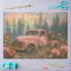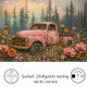 hippie vintage pink truck artwork, rustic pickup in flower field, dreamy floral truck image, weathered vehicle surrounded by blooms, nostalgic countryside truck photo, artistic rusted truck scene, surreal nature and machine contrast, pastel sky truck composition, whimsical garden truck portrait, reclaimed truck in wildflowers