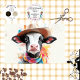 Das Bild zeigt eine digital illustrierte Kuh mit einem Cowboyhut und einem bunten Schal. Das Gesicht der Kuh wird mit großen Ohren und ausdrucksstarken Augen hervorgehoben dargestellt. Der Hintergrund ist farbenprächtig und verleiht dem Bild eine spielerische und künstlerische Touch Weiße Kuh mit Cowboyhut, farbenfroher Schal auf zauberhafter Kuh, künstlerische Farbspritzen, spielerisches und kreatives Kuhbild, prominente Kuh-Gesichtsdarstellung, digital illustriertes Kuhcharakter, ausdrucksvolle Augen und große Ohren, lebendiger Hintergrund mit hellen Farben, fröhlicher Atmosphäre in einer stimmungsvollen Kuh-Atmosphäre Kunstwerk, einzigartige Kuh mit Hut und Schal