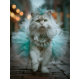Step aside, ordinary décor—this white feline is serving runway royalty in turquoise ruffles and feathered finesse. Draped in a shimmering tutu and a lace-trimmed floral collar, with a regal feathered headpiece to match, this glamorous cat turns any project into pure fantasy couture.