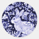Dedham Blue Rabbit, Classic Blue & White Design Runder Aufkleber
