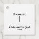 DEDICATED TO GOD/YEAR...A simple black baby name and cross favor tag with minimalist black design. The perfect tag to add to your religious favors, baby dedication.