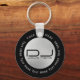 DJ Key Chain mit Imitate Circle Gray Foil Rahmen und DJ Name mit angepasstem Text.