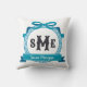 Deep Aqua Blue Gria Key Bow Monogram Kissen