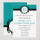 Deep Aqua Damask Monogram Wedite Invite Einladung