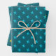 Ein festliches Set aus Papier für die Weihnachtsferien mit aquamarinem Hintergrund mit blauen, silbernen und goldenen Sternen. Ideal für jeden Anlass und macht eine eindrucksvolle Geschenkpackung.