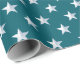Deep Aquamarin Blue Silver Stars Geschenkpapier
