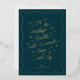 Eine moderne, aquamarine Urlaubskarte mit einer eleganten, vergoldeten Grenze und glänzender Schrift. Diese Non-Foto-Urlaubskarte ist eine stilvolle Art Weihnachtsgrüße zu versenden. Der Rücken beinhaltet vorgefertigte Wünsche mit "einfachen Freuden" oder Platz für Ihre eigene Nachricht. Eine schicke, zeitlose Wahl, um Wärme, Fröhlichkeit und Freude mit Familie und Freunden zu teilen.