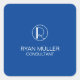 Deep Blue Beruflich Elegant Schlicht Monogram Quadratischer Aufkleber