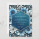 This design features a rich tapestry of deep blue and soft white blooms, accented by dark, leafy foliage. The opulent floral arrangement evokes a sense of dramatic elegance and refined beauty, perfect for a sophisticated affair. The moody color palette creates a captivating and unforgettable atmosphere.