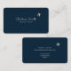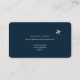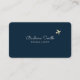 An elegant and minimalist businesscard for a travel agent... with script name and small faux gold airplanes flying... printed on a dark blue background.