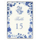 Deep Blue Chinoiserie Vintage Blumenhochzeit Tischnummer