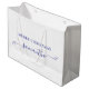 Erstellen Sie Ihre eigene personalisierte oder monogrammatikalische große Geschenktasche für Ihr Geschenk. Passen Sie den modernen niedlichen winzigen coquette Stil Bug Swash handgeschriebene Kalligraphie Stil und Größe je nach Bedarf an. Erhöhen Sie die Größe des Schriftartes für kürzere Namen... verringern Sie die Größe des Schriftartes für längere Namen. Ändern Sie die Farbe des weißen Hintergrunds oder die Farbe des dunkelblauen Textes, um Ihrem Urlaubsthema zu entsprechen.