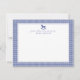 Eine bezaubernde, tiefblaue Gingham-Kinderzimmer-Note für einen kleinen Jungen mit einer zarten Rockpferde-Abbildung und anpassbarem Text. Dieses zeitlose Design ist perfekt für Dankeschön-Noten, persönliche Korrespondenz oder Kinderzimmer-Schreibwaren. Es verbindet klassisch blaues Karo mit eleganten Details. Ein wunderschöner Sake und eine durchdachte Art, warme Botschaften an die Lieben zu senden.