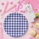 Ändern Sie die tiefblaue Hintergrundfarbe hinter dem nahtlosen Gingham-Muster. Fügen Sie Text zur Personalisierung hinzu. Erstellen Sie Ihre eigenen Teller. Das traditionelle Gingham-Muster verleiht jedem Event eine Touch von Charme und Nostalgie. Diese Teller wären ideal für ein Wiedersehen-Picknick, Grillabende oder jede Ansammlung im Freien, wo eine lässige und fröhliche Atmosphäre gewünscht wird. Sie können auch in eine Vintage oder landesweit inspirierte Hochzeit eingebunden werden.