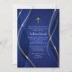 Deep Blue Metallic Gold Orthodox Christian Baptism Einladung