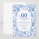 Deep Blue Toile Roses 60th Birthday Invitation Einladung