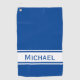 Spielen Sie mit diesem personalisierten Golfhandtuch Golf im Stil. Dieses Design hat eine solide, tiefblaue Hintergrundfarbe mit weißen Streifen und einem modernen Schriftart. Dies ist ein großartiges Geschenk für Männer, Frauen und Junior-Golfer, die in Golfturnieren oder Freizeit-Golf spielen. Es ist auch ein schönes Geschenk für Golftrainer und Instruktoren. Der Name und die Farbe können in den Personalisierungsoptionen angepasst werden. Ändern Sie die Farben zu Ihrer Lieblingskombination oder passen Sie Ihre Golftasche oder Teamfarben an.