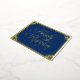Gold-Folie Postkartenfamilie Wiedersehen Einladung mit einem Wirblen goldenen Drehbuch in einem verzierten Rahmen aus Goldfolie. Fügen Sie auf der anderen Seite Ihre Wiedersehen-Einladung hinzu. Wiedersehen-Einladung mit goldener und blauer Postkartenfamilie mit eleganten Goldfoliendetails.