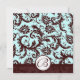 Deep Brown Damask Aqua Blue Wedding Einladung
