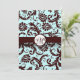 Deep Brown Damask Aqua Blue Wedding Einladung