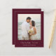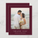 Classic style budget wedding thank you card featuring a simple yet elegant design in a deep burgundy color that is perfect for a fall wedding or a winter / Christmas wedding. Use the template to easily add your favorite photo.